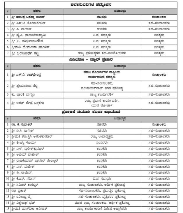 ಫಲಾನುಭವಿಗಳ ಸಮ್ಮೇಳನಕ್ಕೆ ಸಚಿವ ಆಚಾರ್ ಹಾಲಪ್ಪ ಸಂಚಾಲಕರಾದರೆ ಸಚಿವ ಎಸ್.ಟಿ.ಸೋಮಶೇಖರ್ ಹಾಗೂ ಶಾಸಕ ಪಿ.ರಾಜೀವ್ ಅವರನ್ನು ಸಹಸಂಚಾಲಕರನ್ನಾಗಿ, ಸದಸ್ಯರಾಗಿ ವೈ.ಎ.ನಾರಾಯಣಸ್ವಾಮಿ, ಪಿ.ಮುನಿರಾಜು ಗೌಡ, ಹೇಮಲತಾ ನಾಯಕ್ ಮತ್ತು ಜಯತೀರ್ಥ ಕಟ್ಟಿ ಅವರಿಗೆ ಜವಾಬ್ದಾರಿ ನೀಡಲಾಗಿದೆ.