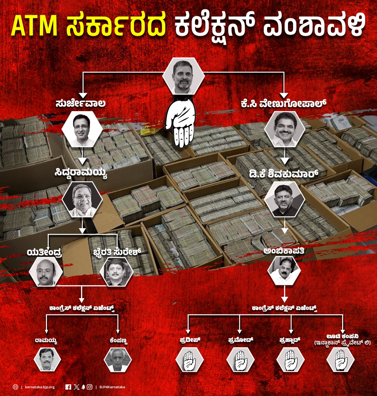 ಕಾಂಗ್ರೆಸ್ ನೇತೃತ್ವದ ರಾಜ್ಯ ಸರ್ಕಾರವನ್ನು ಕಾಂಗ್ರೆಸ್ ನ ಎಟಿಎಂ ಸರ್ಕಾರ ಎಂದು ವಾಗ್ದಾಳಿ ನಡೆಸುತ್ತಿರುವ ಬಿಜೆಪಿ ಇದೀಗ ಕಲೆಕ್ಷನ್ ವಂಶಾವಳಿ ಎಂಬ ಪೋಸ್ಟರ್ ಬಿಡುಗಡೆ ಮಾಡಿದೆ.