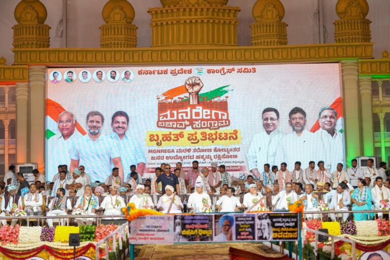 ನಮ್ಮ ಗ್ಯಾರಂಟಿ ಯೋಜನೆಗಳನ್ನು ಟೀಕಿಸಿದ ಮೋದಿ ಮತ್ತು ಬಿಜೆಪಿ ಈಗ ಅವುಗಳನ್ನೇ ನಕಲು ಮಾಡುತ್ತಿದ್ದಾರೆ. ಕಾಂಗ್ರೆಸ್ ಇರುವವರೆಗೂ ಈ ಯೋಜನೆಗಳನ್ನು ನಿಲ್ಲಿಸಲು ಯಾರಿಂದಲೂ ಸಾಧ್ಯವಿಲ್ಲ ಎಂದು ಅವರು ಸವಾಲು ಹಾಕಿದರು. ಜನರು ಮತದಾನದ ಹಕ್ಕನ್ನು ಕದಿಯುವಂತೆ ಬಿಜೆಪಿ ಈಗ ಕೆಲಸದ ಹಕ್ಕನ್ನು ಕದಿಯುತ್ತಿದೆ ಎಂದು ಆರೋಪಿಸಿದ ಅವರು, ಉದ್ಯೋಗ ಖಾತರಿ ಯೋಜನೆ ಮೊದಲಿನಂತೆ ಮರುಸ್ಥಾಪನೆಯಾಗುವವರೆಗೆ ನಮ್ಮ ಹೋರಾಟ ನಿಲ್ಲದು ಎಂದು ಗುಡುಗಿದರು.