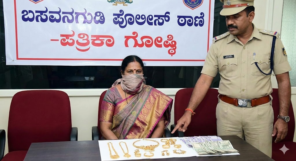 ಬಸವನಗುಡಿಯ ದ್ವಾರಕನಾಥ್ ಕಲ್ಯಾಣ ಮಂಟಪದಲ್ಲಿ ಕಳ್ಳತನ ಮಾಡಿ ಸಿಕ್ಕಿ ಬಿದ್ದಿರುವ ಈಕೆ ಪೊಲೀಸ್ ವಿಚಾರಣೆ ವೇಳೆ ತನ್ನ ಕಳ್ಳತನದ ಕುರಿತಂತೆ ಮಾಹಿತಿ ನೀಡಿದ್ದಾಳೆ ಈಕೆಯಿಂದ ಸುಮಾರು 32 ಲಕ್ಷ ರೂಪಾಯಿ ಮೌಲ್ಯದ ಚಿನ್ನಾಭರಣ ವಶಪಡಿಸಿಕೊಂಡಿರುವ ಪೊಲೀಸರು ತನಿಖೆ ನಡೆಸುತ್ತಿದ್ದಾರೆ.
