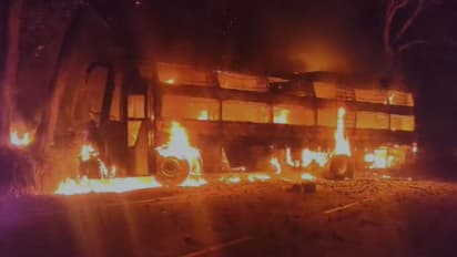ಸುಟ್ಟು ಕರಕಲಾದ ಖಾಸಗಿ ಬಸ್