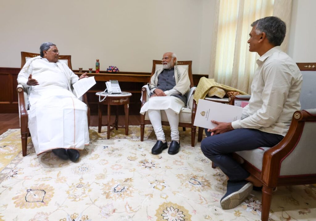 ನವದೆಹಲಿ, ಡಿಸೆಂಬರ್ 19- ಮುಖ್ಯಮಂತ್ರಿ ಸಿದ್ದರಾಮಯ್ಯ ಅವರು ಇಂದು ನವದೆಹಲಿಯಲ್ಲಿ ಪ್ರಧಾನ ಮಂತ್ರಿ ನರೇಂದ್ರ ಮೋದಿ ಅವರನ್ನು ಭೇಟಿಯಾಗಿ ರಾಜ್ಯದ ಬರ ಪರಿಸ್ಥಿತಿಯ (Drought Relief) ಕುರಿತು ವಿವರಿಸಿ, ಶೀಘ್ರವೇ 18,177.44 ಕೋಟಿ ರೂ. ಪರಿಹಾರ ಬಿಡುಗಡೆ ಮಾಡುವಂತೆ ಮನವಿ ಮಾಡಿದರು.