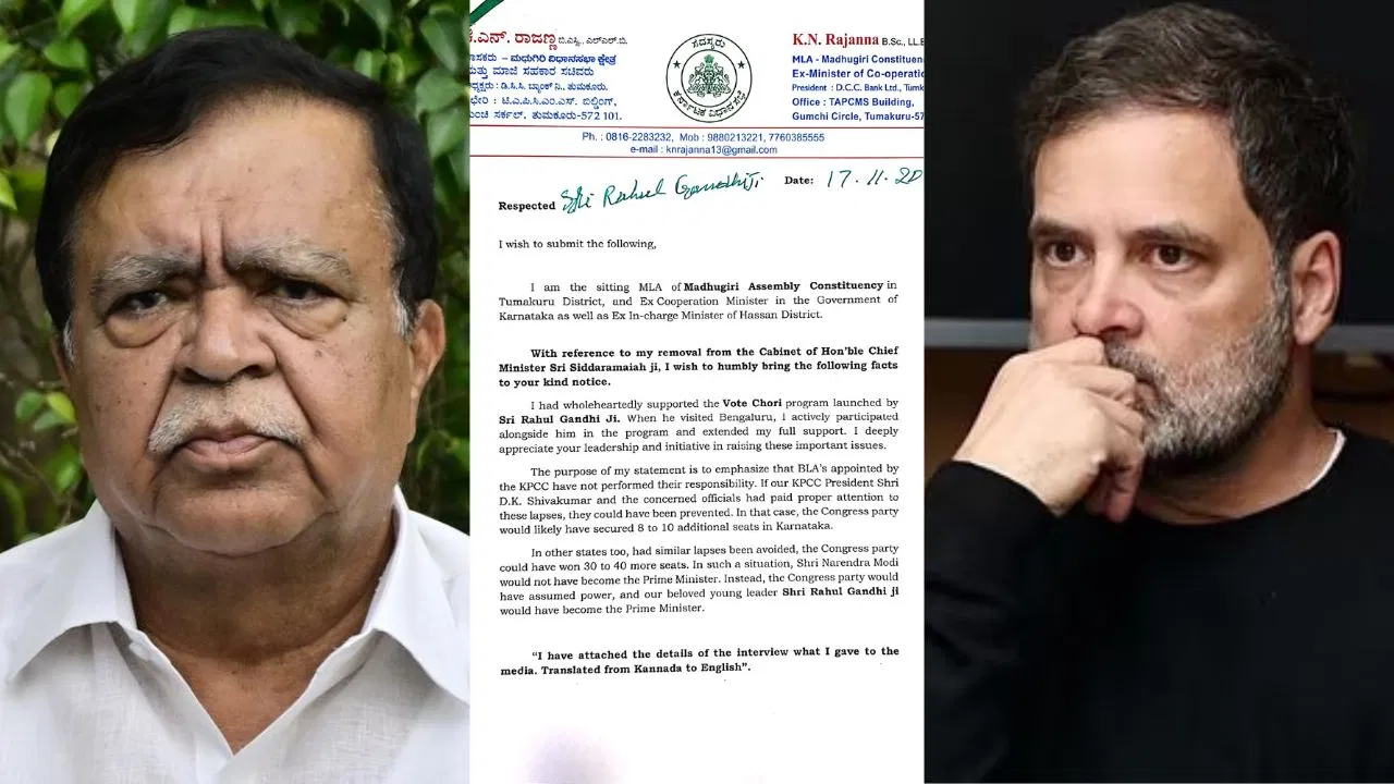 ರಾಷ್ಟ್ರೀಯ ಮಟ್ಟದಲ್ಲಿ ಕಾಂಗ್ರೆಸ್ ಪಕ್ಷ ನಡೆಸುತ್ತಿರುವ ಮತಗಳ್ಳತನ ಆಂದೋಲನ ಕುರಿತು ವಿವಾದಾಸ್ಪದ ಹೇಳಿಕೆ ನೀಡಿ ಮಂತ್ರಿ ಸ್ಥಾನ ಕಳೆದುಕೊಂಡಿರುವ ಹಿರಿಯ ನಾಯಕ ಕೆಎನ್ ರಾಜಣ್ಣ ಇದೀಗ ಲೋಕಸಭೆ ಪ್ರತಿಪಕ್ಷ ನಾಯಕ ರಾಹುಲ್ ಗಾಂಧಿ ಅವರಿಗೆ ಸುಧೀರ್ಘ ಪತ್ರ ಬರೆದಿದ್ದು ಭೇಟಿಗೆ ಸಮಯಾವಕಾಶ ನೀಡುವಂತೆ ಕೋರಿದ್ದಾರೆ.